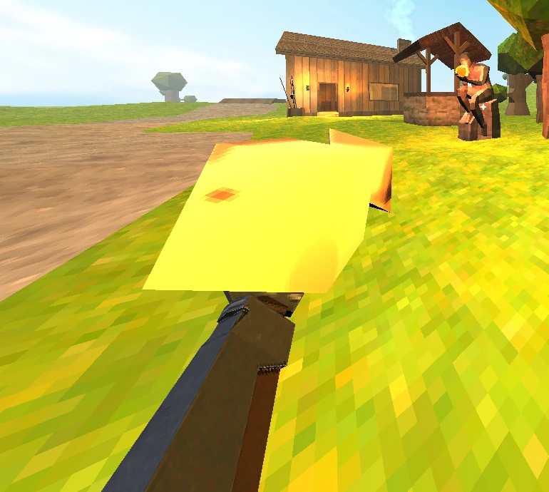 Upon entering the level, the only thing that can be equipped is a fishing rod, which can be obtained from one of several barrels strewn throughout the starting area. Holding down the fire button will charge the power of the throw, with which the float is cast.