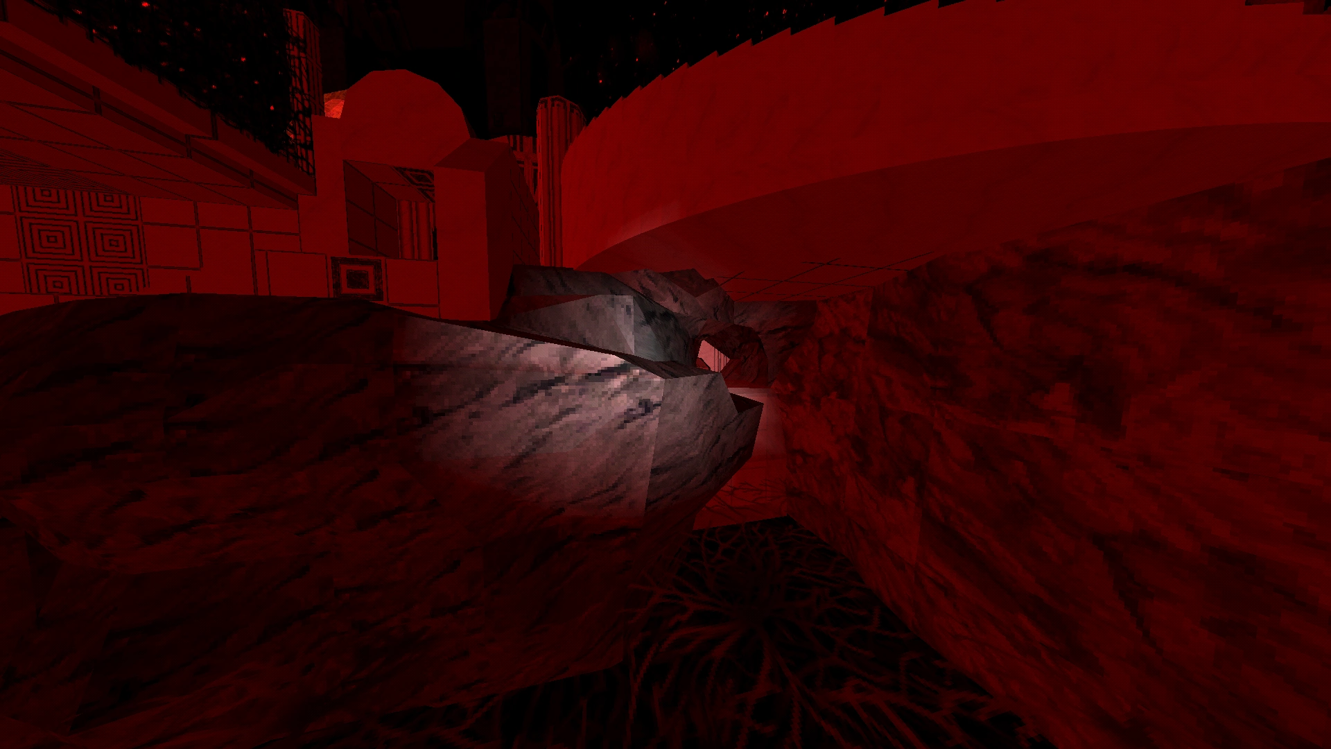After feeding all three blood trees, the giant door in the Central Plaza will open, leading to an incredibly chaotic arena at the bottom of a spiral staircase behind the final Checkpoint. The arena is a gigantic rectangular room decorated by pillars, with stairs along the sides leading to an elevated platform in the middle. There will be two Blue Hookpoints on either end of the arena, as well as a Dual Wield power-up on top of the elevated platform.