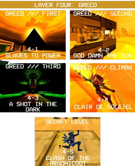 All four (4) levels of Greed, including the secret level. 💰