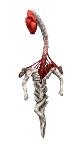 Deathcatchers have a spiraling base similar to Idols, with an upper body resembling a human being split in two. A heart hangs from the spine emerging from the body. (SPOOKT IDOL)
